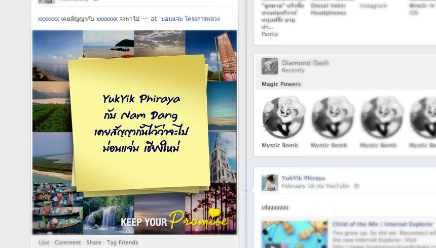 จากอินไซต์ของคนที่รักการท่องเที่ยว ที่พบว่าการเดินทางจะมีความหมายมากขึ้นเมื่อได้เดินทางกับคนรู้ใจ นำไปสู่การผลักดันแคมเปญ “Promise” ผ่านแอพพลิเคชั่นในเฟซบุ๊ค ผูกเอาคำสัญญาของผู้เล่นแคมเปญที่ระบุว่าจะไปเที่ยวกับเพื่อน โดยที่เลือกสถานที่ท่องเที่ยวได้เอง ทำให้มีแหล่งท่องเที่ยวที่หลากหลายแสดงให้เห็นในเฟซบุ๊ค และชักจูงคนเล่นมากขึ้นด้วยเซเลบบริตี้เด็กที่โด่งดังในเวลานั้น